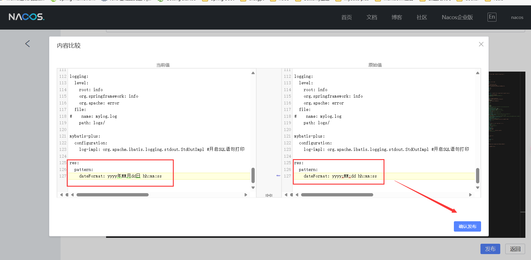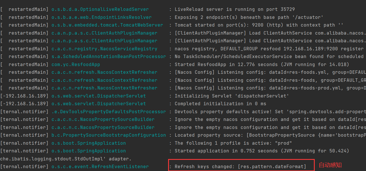 在修改配置文件的同时,nacos实际上向项目中resfood服务的
