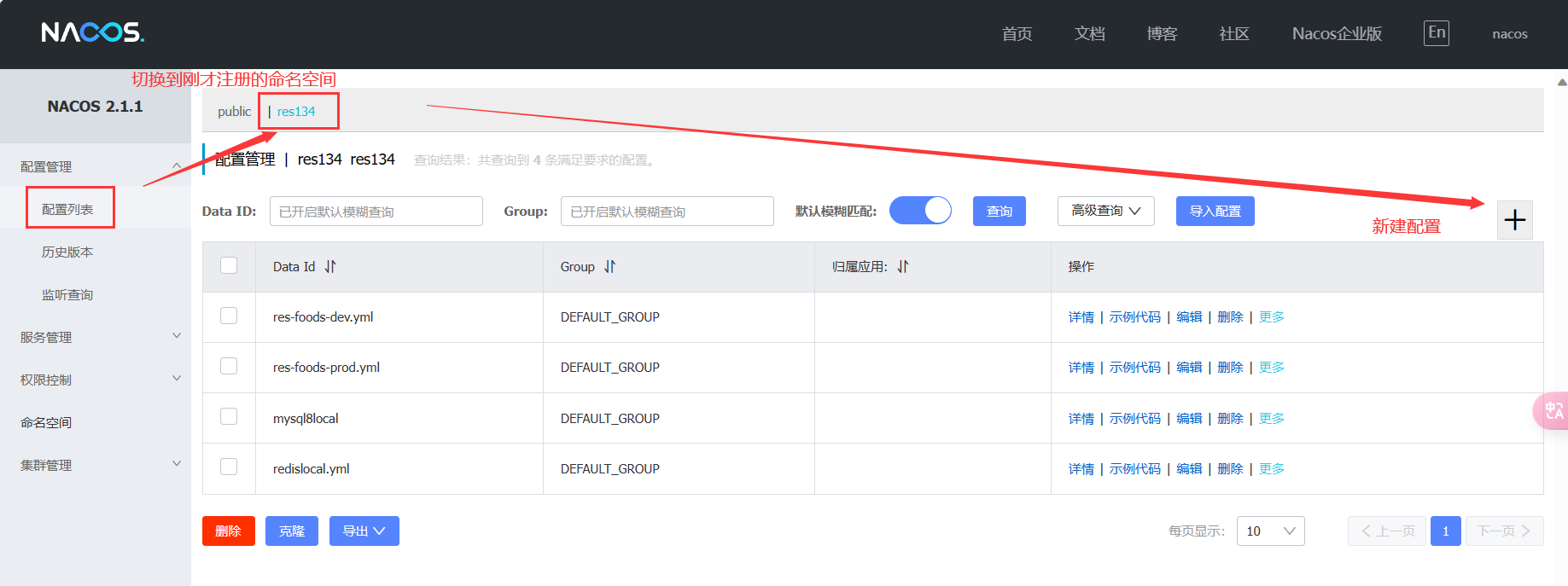 新增一个res-foods-prod.yml的产品配置,只需对原配置文件端口号和bootstrap.yml中的环境配置项进行修改即可,后续配置待定进行修改